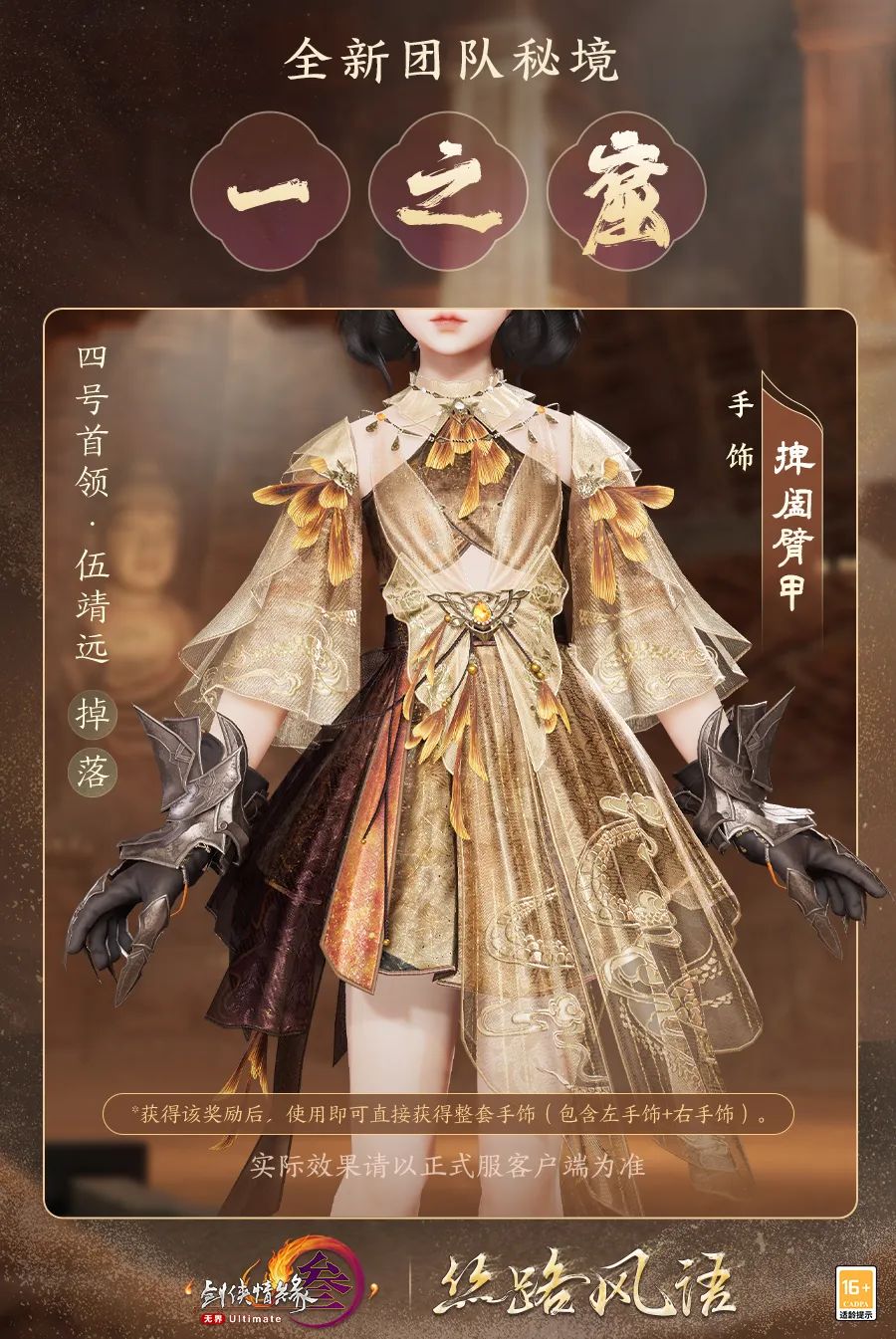 九九重阳今又至,祝愿侠士们登高观盛景,笑语聚平安!好吃的柿子分你一半~ 之前三娘爆料过全新团队秘境“一之窟”的部分掉落奖励,全新西域风情成衣和墨镜眼饰深深吸引了大侠们的目光! 但大侠以为那就是全部了吗 NONONO~(戴上墨镜摇晃手指)还有全新玩具、腰部挂件、帅气手饰奖励等待着侠士们的到来!今天三娘带来了“一之窟”秘境首领和特殊掉落的完整剧情赏,知己知彼,百战不殆~ 以后常常会见到这些首领朋友呢,让三娘先来烩烩会会你们(推墨镜) *测试服的各项表现、效果与数值均不代表最终情况,我们将持续优化和调整,实际请以正式服为准。 一号首领·骆耀阳 骆耀阳乃是雪谷前任谷主骆独逸之子。昔日,明教未在中原崛起之时,雪谷为黑道第一大派。先天元年,明教高手尽出击杀骆独逸,而后,其随身兵器“三刀六洞”与子骆耀阳一同失去踪迹,雪谷大权旁落,由彼时的二把手石鸿霄接管。 骆耀阳逃出生天后,得一位神秘智者指点,蛰伏于天境谷。骆耀阳潜心修炼二十余年,矢志复仇。他暗中培养了一个名为“细砂”的组织,其中既有对骆独逸忠心耿耿的旧部,也有骆耀阳自己招揽的新锐。终于,感觉时机已至,骆耀阳发动“山窟之战”,以三刀六洞之罚杀了石鸿霄,一举夺回了雪谷。 西域坊间传闻,大沙海之下埋藏有不计其数的财宝,唯有世间至强者才能取出。那位自称韦商主的女子无意间透露了宝藏的下落,骆耀阳意识到,这或许是令雪谷重返巅峰的契机。 首领特殊掉落 重掌雪谷后,骆耀阳特遣匠人以墨烟色琉璃打造镜饰,每每与谷中众人议事,都用此镜遮挡双目,使喜怒不形于色。如此一来,下属难窥其心意于微末,言语行动间更添几分敬畏与谨慎。 二号首领·韦柔丝 韦柔丝原是伊玛目之义女。伊玛目本为祆教长老,在他发现了西域商会大商主卢延鹤竟是九天朱天君之后,便精心布局多年,将其囚禁于冷龙峰,自己取而代之,以卢延鹤之名掌控商会。 韦柔丝虽为伊玛目义女,但她心知肚明,自己不过是伊玛目的诸多棋子之一。韦柔丝曾受伊玛目指派接近血眼龙王萧沙以获取其身上的《山河社稷图》。在李倓的安排下,韦柔丝进入达摩洞狱中接近萧沙,她很快获得萧沙的信任甚至成为他的弟子。而后的几年,韦柔丝随萧沙逃离达摩洞,前往南诏成为阁罗凤的座上宾,风光一时。此期间,韦柔丝也曾动摇过,但在她知晓了九天的存在后,她决定选择那个更高的存在。在战宝军械库,她终于对她毫无防备的师父萧沙下手了,算是圆满完成了伊玛目交给她的任务,因此更得伊玛目的器重和信任。韦柔丝此生,是伊玛目的义女,是萧沙的徒弟,唯独不是她自己。于是,在那之后,她便在暗中组建了真正属于自己的势力——戮夜游。 然而,不久后,伊玛目伪装卢延鹤之事败露,他亦被九天关进了冰火岛监狱。韦柔丝明面上协助祆教救人,暗中却令其心腹分兵行动。伊玛目身死冰火岛后,韦柔丝很快便以其义女的身份获得了伊玛目的遗物,而后取道渤海、回纥返回西域,接管了西域商会。 尽管韦柔丝手握信印代为行事,但因大商主踪迹渺无,迟迟没有现身,引得商会中人非议不断,难以服众。所以韦柔丝始终不能全揽西域商会事务,最后不得不与商会的几位大掌柜妥协,瓜分了商会的版图和财富。 韦柔丝不甘心就此收手,她想起伊玛目曾提过的九天宝库,于是频繁带领戮夜游众人游走于西域各处,徐徐开展自己的布局:设法找到并打开一之窟,取出其中的财富,以真正重掌商会大权。 首领特殊掉落 与韦柔丝战斗时观其龙相形意所悟的招式,“威力无穷”。 三号首领·宋泉 宋家原是中原大户,因获罪而流放至庭州,宋氏族人虽然在边州立功以重振家业,然而三代过去了,家族运势却每况愈下,及至宋泉这一代,宋家只得以采药勉强维持生计。 七岁那年,宋泉随父兄上山采药,忽遇迷雾而与父兄走散,又遇群狼,虽命悬一线,却仍能冷静地捡起脚边树枝躲过了狼群的首攻。一瞬间,她设想了数十种逃脱方法,最终只得接受自己将死的局面,于是坐下等死。就在这时,一位老者出现,为她挡下了狼群的攻击,并教她以攻为守,躲避狼群的攻击,宋泉由此获救,而好运也似乎从此开始眷顾宋家。虽然宋泉手中无剑,但老者看似平平无奇的几句指点却让她醍醐灌顶,从此得入剑道之门。 因家中贫苦,宋泉只得削木为剑,日日练习,凭其悟性,渐渐自成章法,甚至竟能真的击退山中野兽。得此术护身,宋泉能更深入山林,采到更为珍稀的药材。一日,宋泉前往金满城一富商府上送药,正遇富商招待一位座上宾,偶然得见那位上宾使了几招剑法,竟与自己所练的剑法颇为相似,几番打听才知道,此人乃是位于天山东段之上的武林名门——冰川宫的弟子,而当年救下自己的老者正是冰川宫宫主。宋泉返回家中与家人商量一番后,决定前往冰川宫拜师学艺。 彼时的冰川宫宫主晏清泓,痴心剑法数十载,挑选门人十分严格,那些为利而来的人,即便是世家名门出身,也会被不留情面地拒之门外。在晏清泓看来,心境不纯之人练不好剑法;但在只有十岁的宋泉看来,若不为利又何苦练剑。为了出人头地,小小年纪的她学会了隐藏自己对名利的渴望,最终成功拜入冰川宫。 此后十数年,宋泉凭借其十分的天赋和百分的勤奋终于成为了冰川宫首席弟子。也是这十余年,宋泉“无意”中结识了不少伊州的豪门望族,使得宋家从一个刚迁至伊吾城的散商
