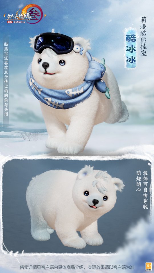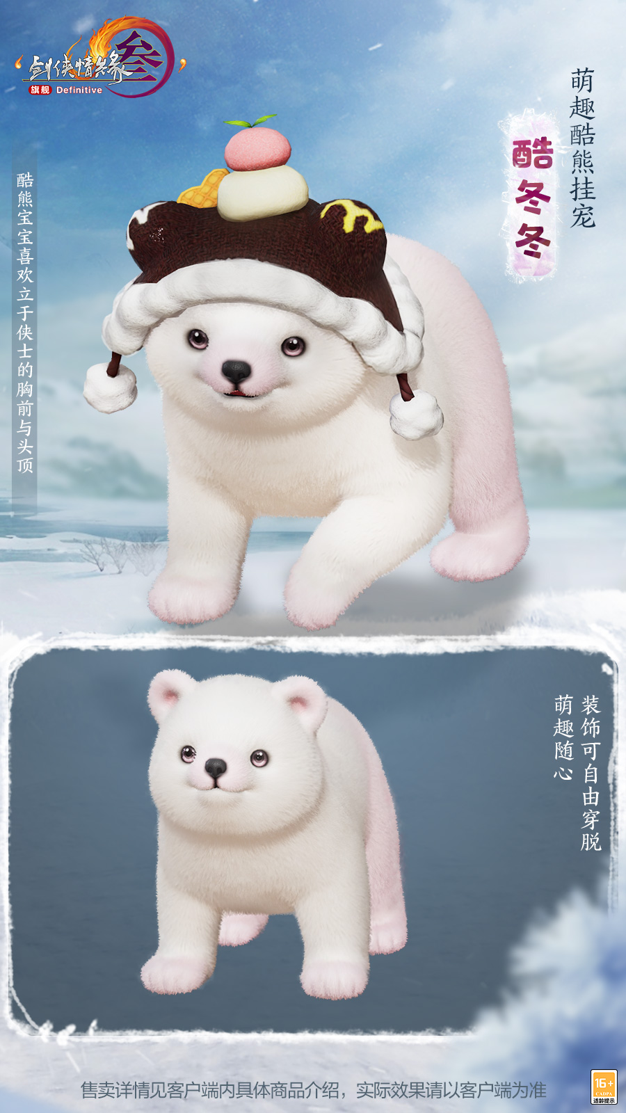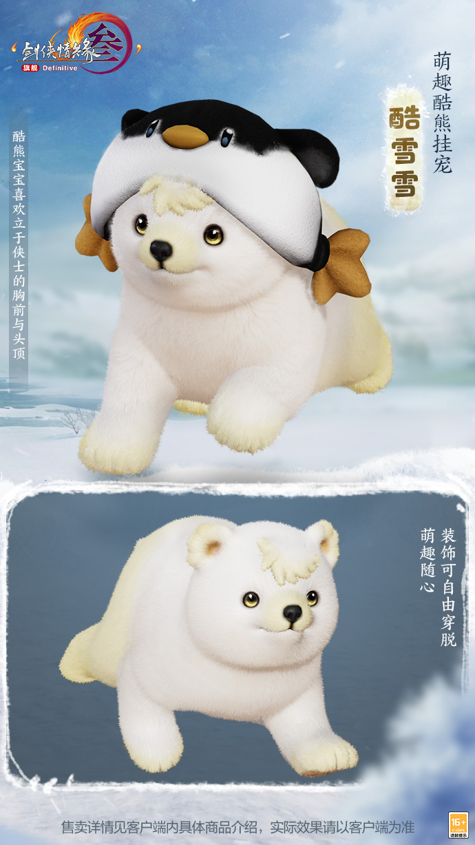 罗衣缀绮焕流光,风骨如仙映玉堂,《剑网3》全新系列新品将于11月6日上线,双11大惠战折扣活动火热进行中,精彩新品依次登场,更衬侠士风华! 全新高定风外装礼盒“瑶台仙梦” 九霄浮霭绕琼楼,暗香沾衣意未休。高定风格回归,将高奢秀场设计融合古风元素! 全新外装礼盒“瑶台仙梦”基于高定风格,择多种材质巧妙搭配。挽月华织素纱,熠彩暗涌若见星汉,错落有致,尽显尊荣态。发间缀泠然银饰,宝石清透似仙姝垂泪,宝冠凝辉,气质不凡。 外装特效开启时,玉露盈盈,随人心念升于云阶,清辉漫开,裙裾如银河流淌,浮光耀彩垂落九天。倏而于瑶池仙境虔诚祝祷,点露成星,星痕随指尖划过长空,散入空濛,穹苍万象迷离梦幻。礼盒内含特效背部挂件“韵仙灵”,使用特效时清泉绕身侧流转,侠士借水势轻跃腾空,碧波腾挪尽显广纳万物之气度,引遐思漫溯。 萌趣酷熊挂宠 玉团滚雪憨态萌,跃动趣闹惹心柔,《剑网3》全新萌趣酷熊挂宠自雪域远道而来,圆滚滚的身躯像被风吹拂的团云,携欢乐造访大唐江湖!酷熊宝宝的装饰可自由穿脱,喜欢立于侠士头顶或挂于身前,沿着肩头向上攀爬,撒娇打趣,可爱非常! 小小身躯藏着大本领,它们还是起舞的小天才,机会难得,一起在冰上跳支舞吧!一旦瞧见伙伴,酷熊宝宝活像一颗雪团子冲锋向前,时而与伙伴你追我赶,时而翻滚在地,解锁更多趣意盎然! [编辑:月光下完美]