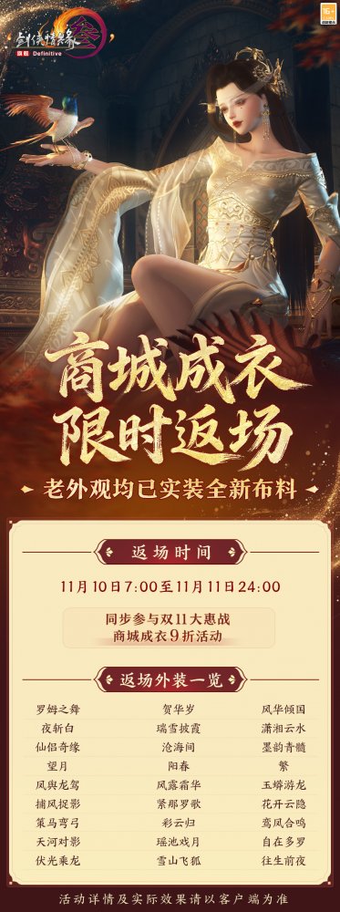 给你的发型染个色吧!《剑网3》全新染发功能现已登场,还有门派特殊武器外观拓印券与商城成衣限时回归,双11大惠战折扣活动火热进行中,江湖精彩风物,邀你共享! 鬓凝秀色,影映轩窗。侠士可使用【云鬓脂】系列发型染色道具将商城分类中的【发型】染至黑、白、金、红4个色系;发型中的发饰亦可进行染色,共有126种颜色可染!同时亦可调整发型哑光度、发型高光位置等材质参数。旗舰画质下,游戏内商城同步开放成都/扬州/太原/侠客岛的光照环境预览,以便更好地查看不同光照下的颜色表现。 【云鬓脂】系列染发道具首周染发均享8折折扣,活动期间登录即送黑色系染发道具【云鬓脂·黑】,不要错过哦!侠士消耗任意染料染发,均可同时0元染发饰。染发保存后,依然可以随时切换原色发型,最多可保存4种预设。 惊喜连连,特惠不断!另有染发满赠活动同步开启,购买【云鬓脂】系列染发道具累计消费满指定额度,即可额外获赠白色系或红色系染发道具,赠品使用后,可永久保存染发预设,为侠士的江湖姿容更添风采! 与此同时,特殊武器外观拓印道具【摹铸图·特】现已返场,上架立享3.9折优惠!侠士使用图谱后,即可获得门派特殊武器的无属性对应外观,锋芒难当,势冠天下! 还有商城成衣限时回归,老外观均已实装全新布料效果。购买可享双11大惠战成衣外装9折优惠,诸多精彩,不容错过! [编辑:月光下完美]