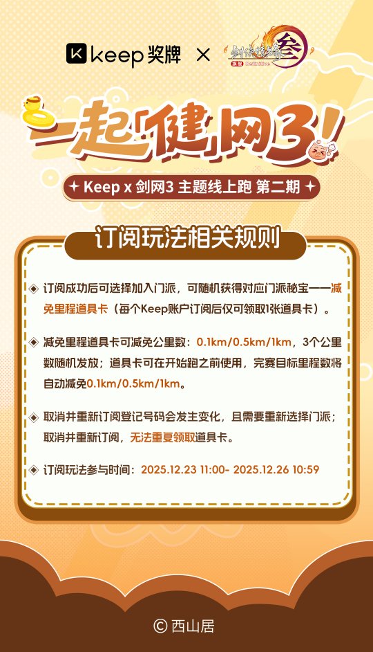 线上线下“健网3”,大唐侠士请注意,运动江湖正集结!《剑网3》携手Keep第二轮联动活动将于12月26日正式上线! ?
