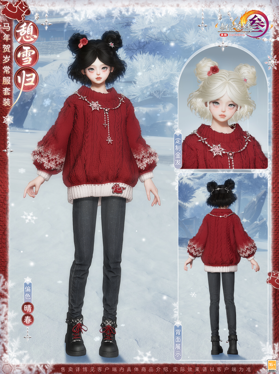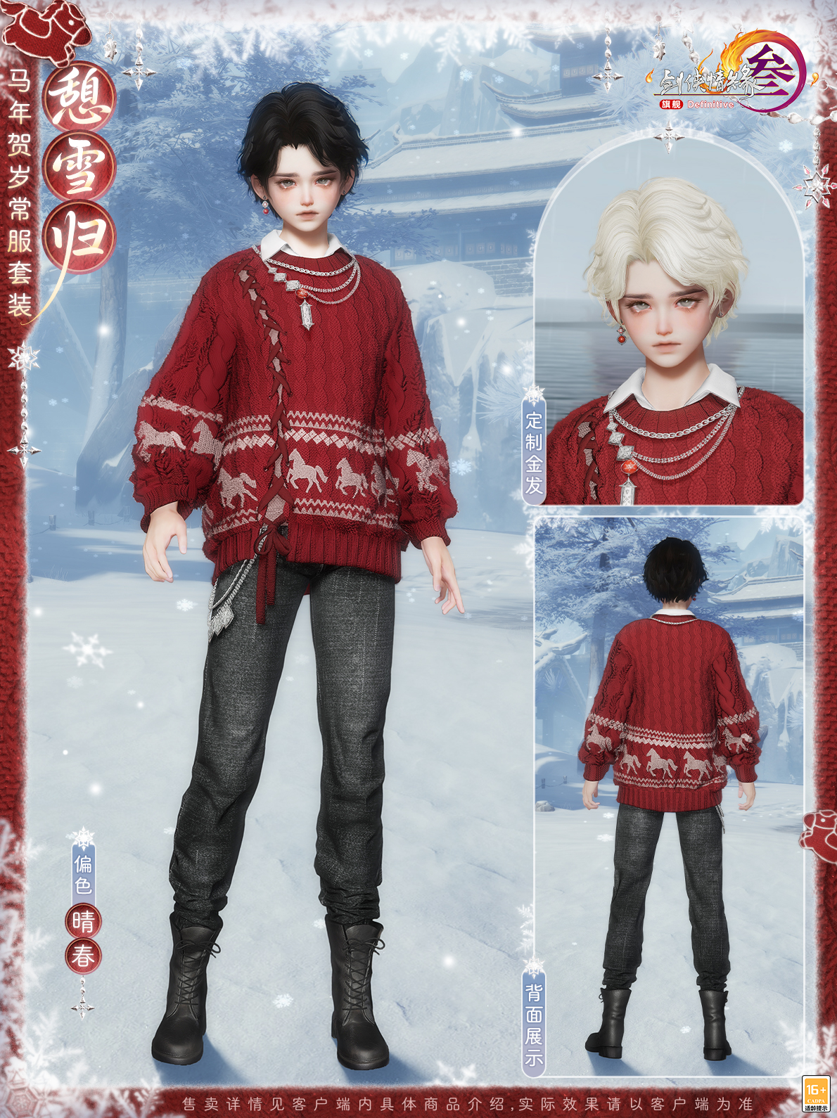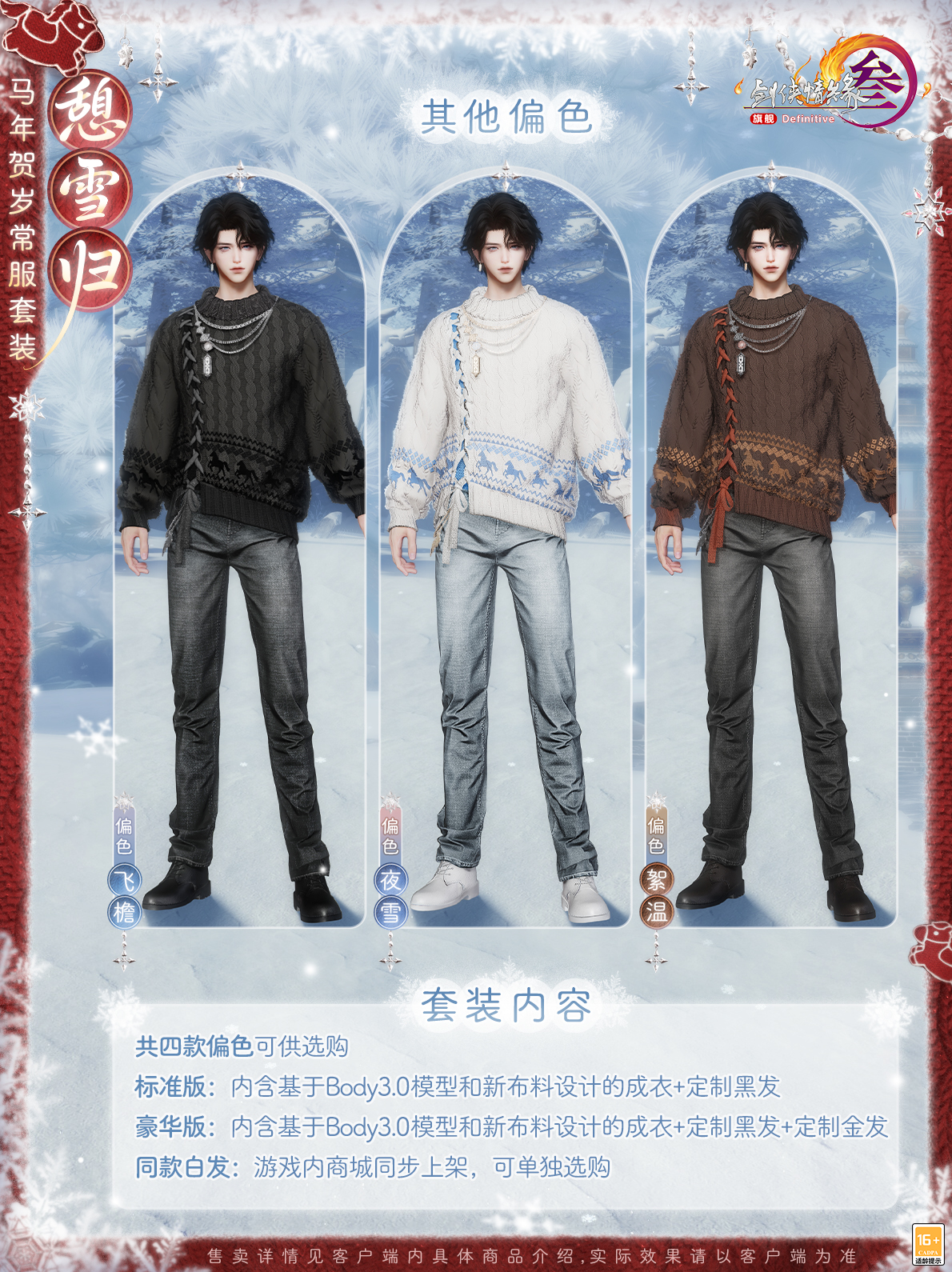 续写闪耀故事,守护纯真美好!《剑网3》马年新春版本“四海同歌”携春节贺岁系列外装2月5日上线,还有来自童话世界的伙伴将与你相伴江湖! 《剑网3》×Ethan Reed冒险童话小剧场 传说在弓月城外,有一处常年薄雾轻萦的山谷,其中藏着被古老歌谣代代传颂的翡翠幻境,而新的小马伙伴——“晨曦”的故事,就从这里开始。 穿越绮丽梦境,来自童话世界的朋友降临大唐!让我们与“晨曦”和神秘美丽独角兽“梅兰”相会,共度闪耀的美好时光。 发挥“可爱”的力量,见证童心的珍贵!本次我们邀请到了国际知名艺术家、毛绒绒亲爹——Ethan Reed,共同创作了这段奇幻的浪漫之旅!视频中不但有唯美的故事篇章,还有《剑网3》×Ethan Reed联合创作的萌趣挂宠“晨曦”与全新骏马礼盒“雪林幽兰”,以及马年贺岁常服套装“憩雪归”等新品展示,一起来看看吧! Ethan Reed与他的小马“晨曦” 以写意风韵勾勒梦幻的童话世界。心怀热爱,守护纯真,以笔为媒,编织美好!此番Ethan Reed将倾情分享联合创作的心路历程,与侠士一同见证活泼可爱的小马如何跃然笔下!小马“晨曦”踏光而来,赴马年新岁,愿诸位侠士新年顺颂时宜,百事从欢! 联合创作萌趣挂宠与骏马礼盒 当可爱降临大唐,江湖气韵与童心奇想便会碰撞出别样火花!《剑网3》×Ethan Reed联合创作萌趣挂宠可爱灵动,舒展的鬃毛是自由与热情的印证,宛若潜入梦境的使者,把满格可爱播撒江湖。更有多变表情带来无尽欢乐,嬉笑辗转间,一举一动尽显“晨曦”的俏皮本性。 狡黠灵动,活泼讨喜,小小的身型藏着无限的趣味!若与“晨曦”同游,俏皮小马将相伴侠士身侧,并解锁多种趣味互动,时而环身轻奏乐曲,时而撒娇尽显萌态,更如林间精灵般绕身翩飞,满溢亲昵,播撒名为爱与纯真的魔法! 纵使收获无数宝藏与荣耀,晨曦的内心始终留有一片柔软的空白——那里只属于梅兰。《剑网3》×Ethan Reed联合创作全新骏马礼盒“雪林幽兰”以独角兽“梅兰”为灵感,着意展现这位宛如画中降临的梦幻精灵,温柔而高贵。不涉尘嚣,自守灵衿。幽谷长在,风过梅音。 马年贺岁常服套装“憩雪归” 温情新岁,踏雪而归。马年贺岁常服套装“憩雪归”加持全新材质工艺,融入小马元素,增添俏皮妙思,还原真实毛线的肌理感,将蓬松软糯的质感与自然错落的纹理层次尽数呈现。 身着暖绒毛衣,轻裹一身温煦,邂逅冬日独有的温柔治愈。共有四款偏色可供选购,豪华版礼盒另含定制金发! [编辑:月光下完美]